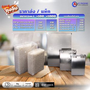 รายละเอียดรายการถุงจีบแพ็คข้าวแบบซีลกลาง ถุงจีบแพ็คข้าวสาร แบบหนา ไนรอนฟูดส์เกรด