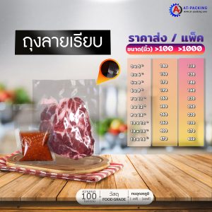 รายละเอียดรายการถุงแบบเรียบ ซีล 3 ด้าน แบบหนา ไนรอนฟูดส์เกรด หนารวม 200 ไมครอน