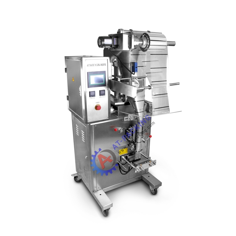 เครื่องบรรจุอัตโนมัติแนวตั้ง รุ่นอุตสาหกรรม ออกแบบมาให้ใช้งานกับสินค้าที่เป็นเกล็ด หรือผงแบบไม่ละเอียดมากเช่น พริกไทย / พริกผง / ข้าวขั่ว / กาแฟ 3in1 / หอมเจียว / หรืออื่นๆที่เป็นชิ้นเล็กๆ ที่ไม่ถึงกับผงแป้ง การทำงาน ระเอียดแม่นยำ ด้วยระบบคอมพิวเตอร์ควบคุม มีการบรรจุด้วยขนาดถ้วยปรับตวงตามขนาดที่ต้องการ  มีความแม่นยำสูง สเถียร 99% เปอร์เซนต์ความคลาดเคลื่อนต่ำเพียง 0.1-0.2 % เท่านั้น  ตัวเครื่องแข็งแรงโครงสร้างผลิตจาก Stailass SUS 304 ป้องกันสนิม  ตัวเคลื่อนย้ายสะดวก มี 4 ล้อเลื่อน พร้อมระบบล็อกล้อ มีชุดหน้าจอ PLC ควบคุมแบบสัมผัส ( Touch screen) ตั้งค่าการบรรจุ และสามารถปรับขนาดความยาวของซองได้ตามความต้องการ ส่วนความกว้าง ของซองสามารถปรับตามขนาด Fromer สินค้าชนิดนั้นๆ
